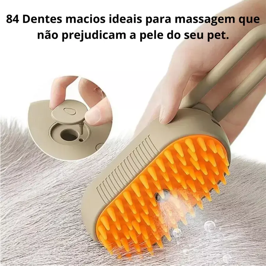 Escova 3 em 1 Pet a Vapor Jhoy Pet – Remove Pelos, Massageia e Hidrata!