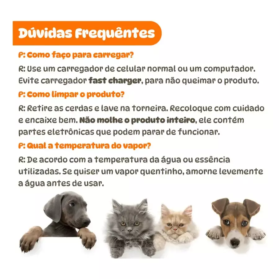 Função a Vapor: Amacia pelos, remove sujeiras e facilita a escovação, evitando desconfortos.